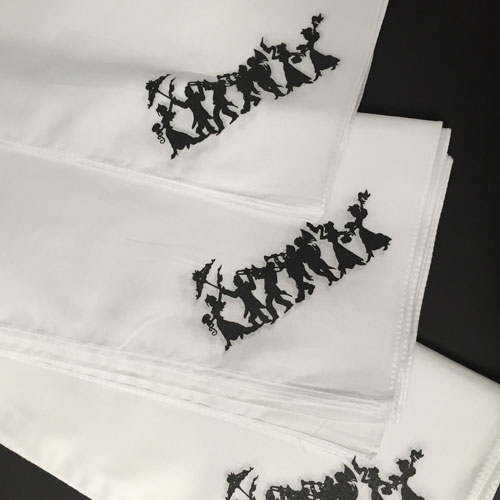 Perfect for the last minute Second line Event. The wedding parade is printed in corner of white 14 by 14 inch handkerchiefs in black ink. Order by the dozen.. This is an item that we have in stock and we can print more quickly if needed.